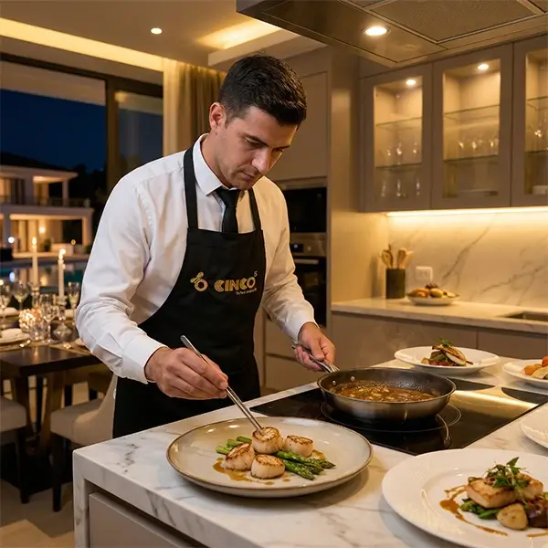 An intimate chef-led experience at your home or venue, fresh cooking, refined plating, and calm pacing from first course to wrap-up.
